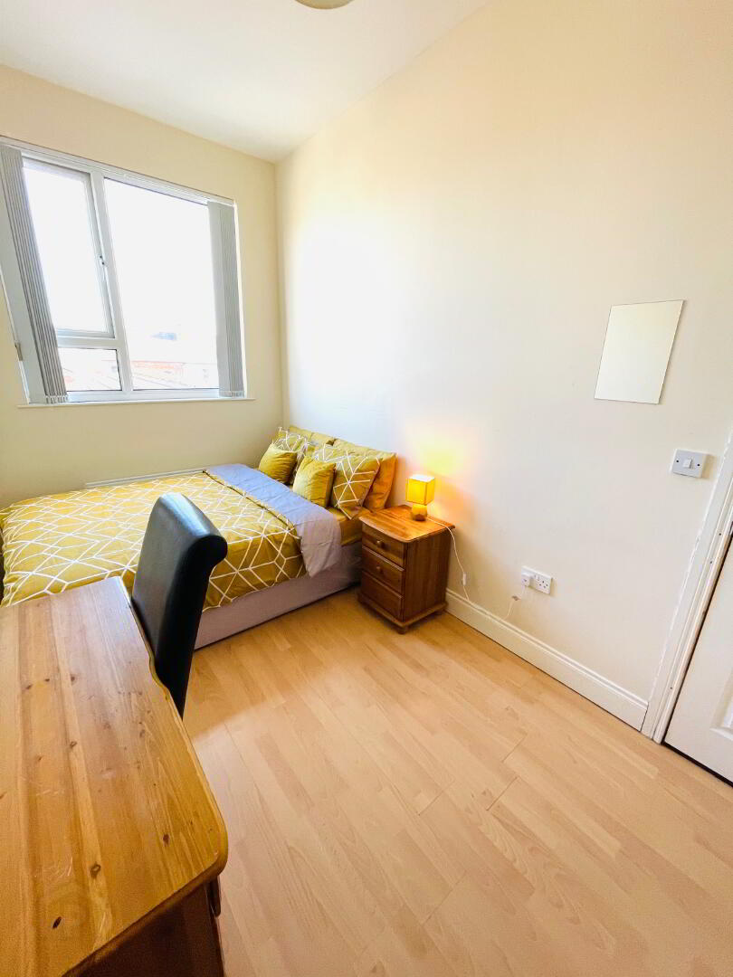 Room 5 has been curated to provide a turnkey living experience. The space is fully furnished with a comfortable double bed designed for optimal rest. A spacious wardrobe and bedside cabinet to maintain an organized environment. A dedicated desk and chair, perfect for remote professional tasks or intensive study as well as Integrated access to superfast broadband, essential for high-bandwidth digital requirements.